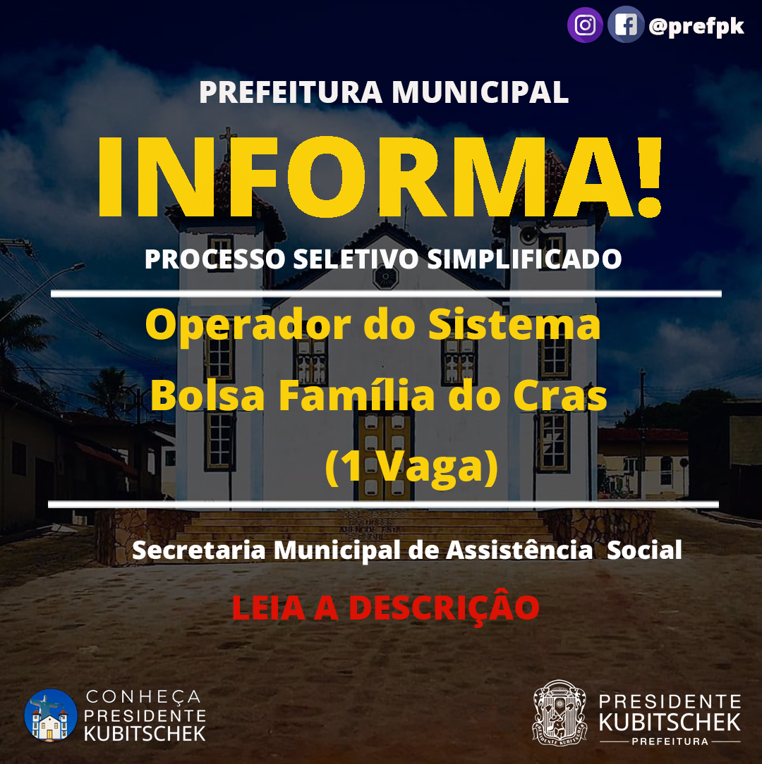 Operador do Sistema Bolsa Família do Cras (1 Vaga)