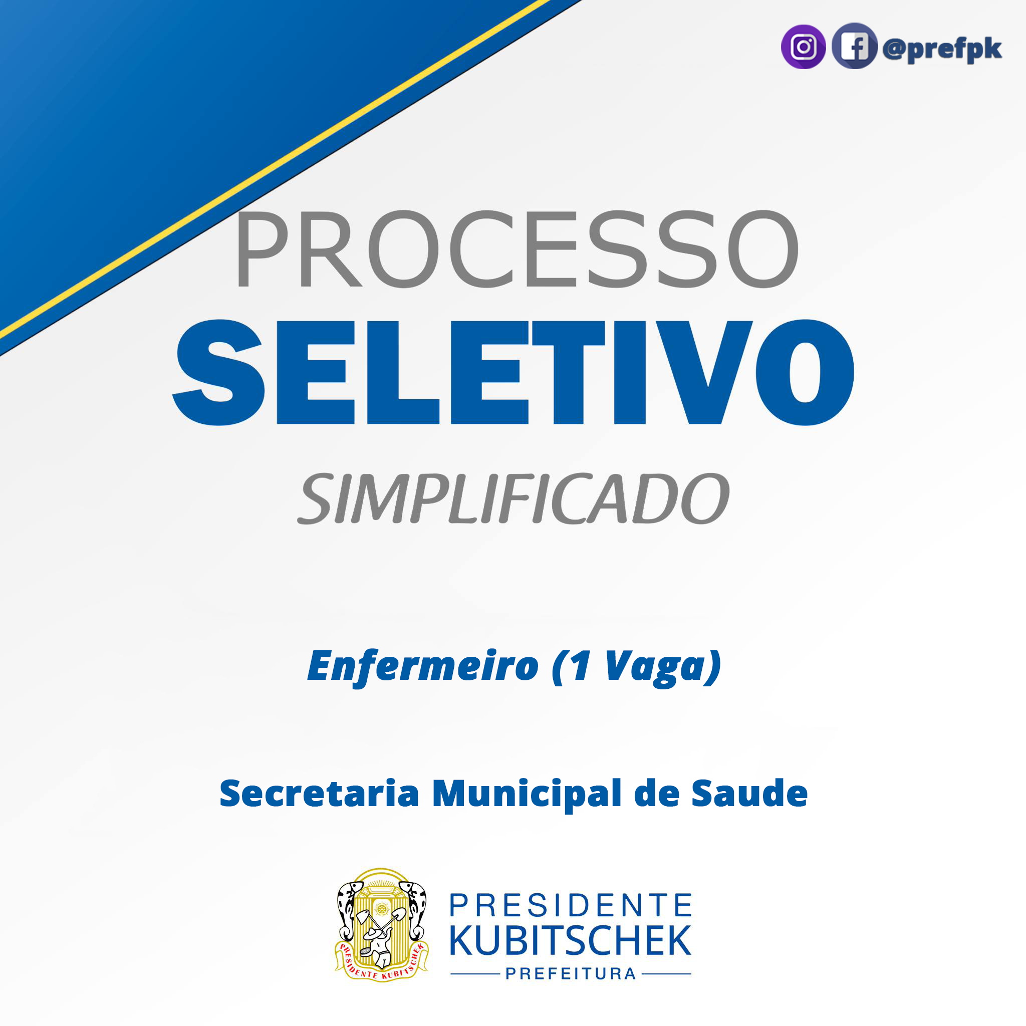 O Prefeito Municipal de Presidente Kubitschek, Estado de Minas Gerais, no uso de suas atribuições legais, torna público a realização de PROCESSO SELETIVO SIMPLIFICADO em caráter de URGÊNCIA e EMERGÊNCIA para contratação temporária das funções abaixo relacionadas, para atuação na Secretaria Municipal de Saúde,