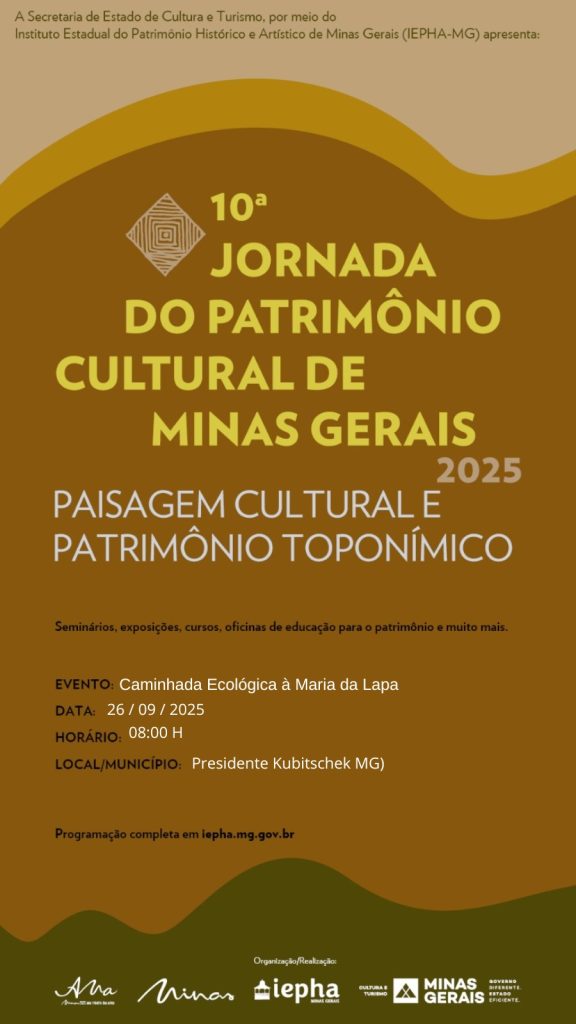 Em 2025 em sua 10ª edição da Jornada do Patrimônio Cultural de Minas Gerais o IEPHA/MG apresenta o tema PAISAGEM CULTURAL E PATRIMÔNIO TOPONÍMICO, buscando refletir sobre a intrínseca relação entre patrimônio cultural e natural e patrimônio material e imaterial, e a importância dos nomes de lugares como elementos de memória e identidade.
